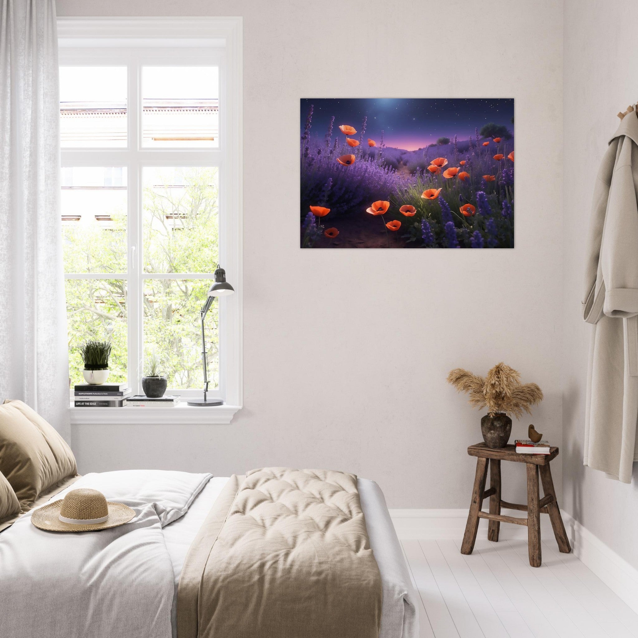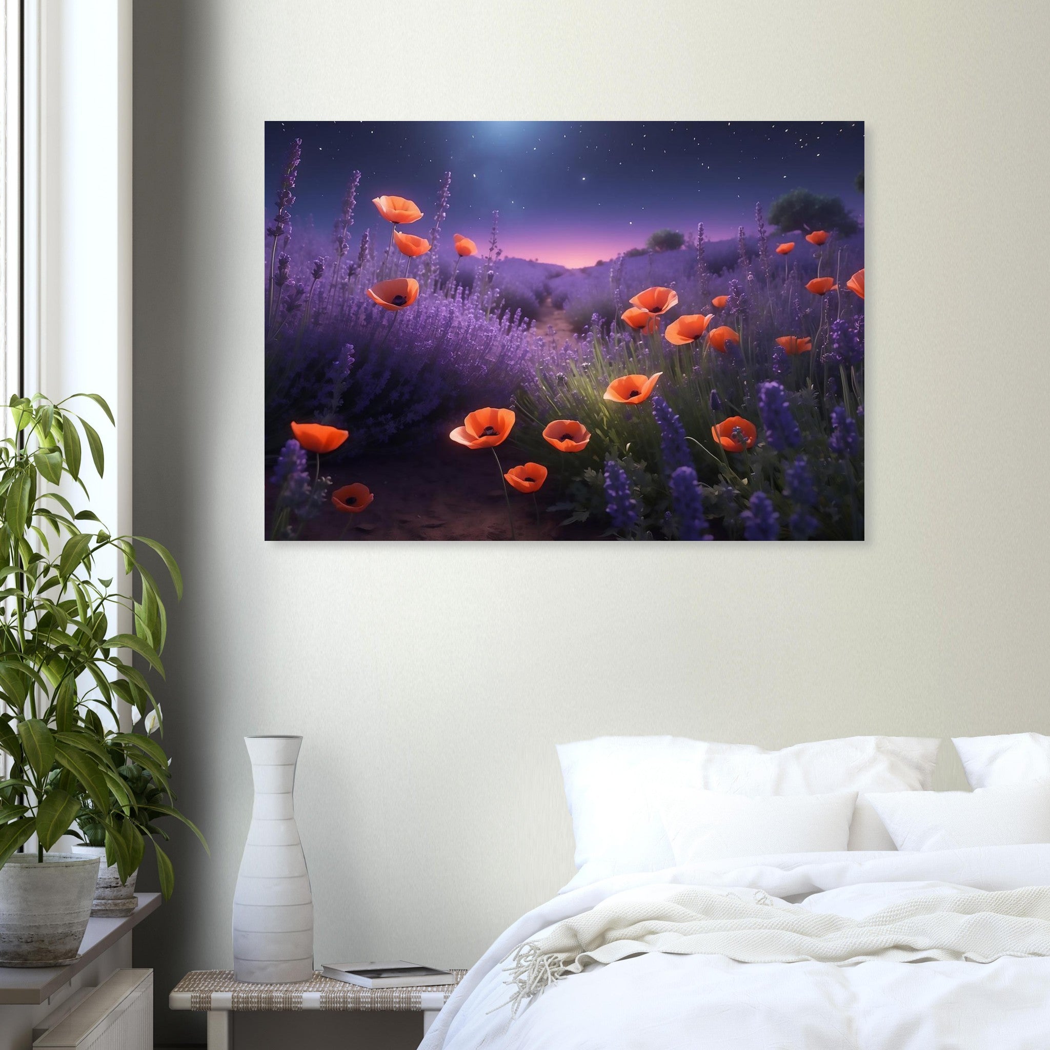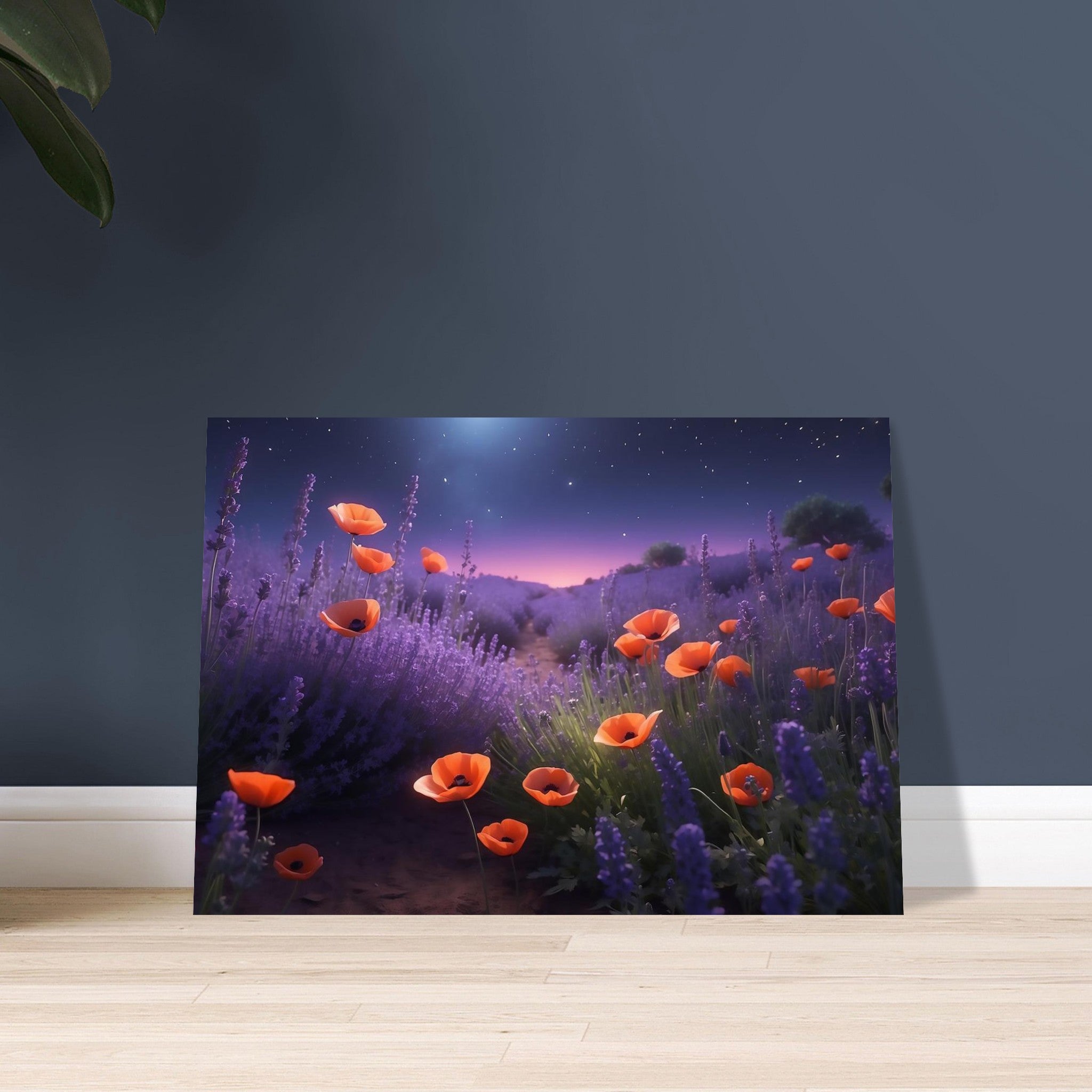 Material: Aluminij DIBOND® – dve plasti belega aluminija s črnim polietilenskim jedrom, lahek, a močan, idealen za večja umetniška dela.
